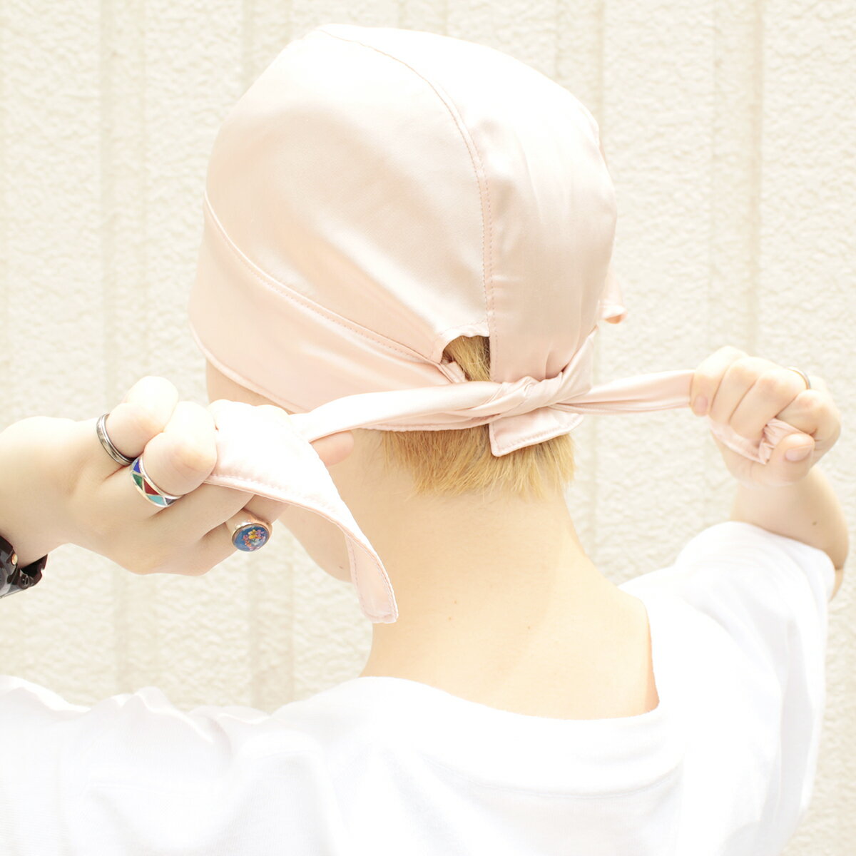 就寝時のヘアケアや室内用は勿論、外出時の帽子インナーにも◎」