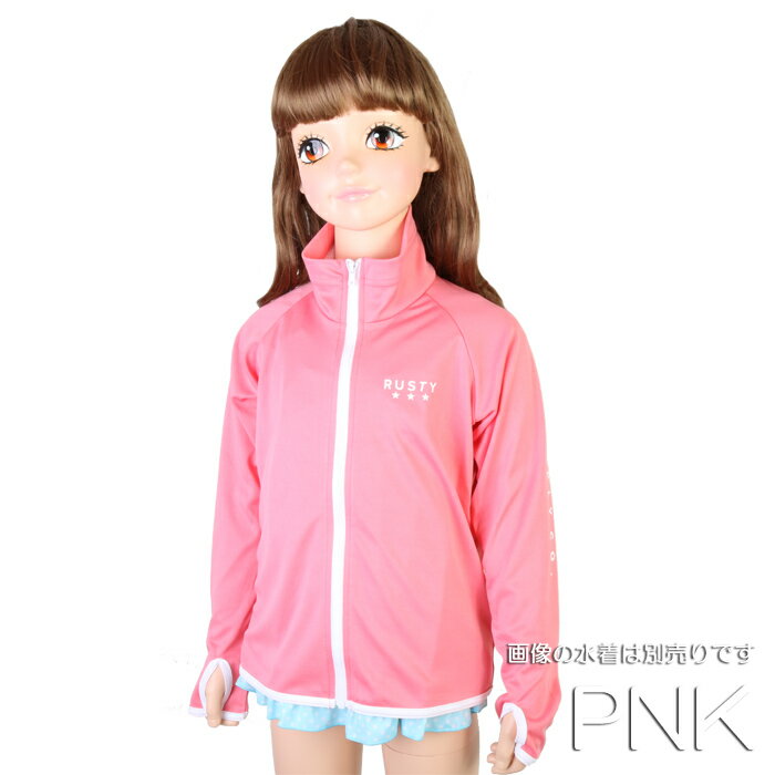 RUSTY ラスティ ラッシュガード ジュニア キッズ 女の子 長袖 120 130 140 150 男女兼用 接触冷感 フードなし 小学生 中学生 水着 スクール水着 フルジップ ジップアップ UPF50+ UV ラッシュRUSTY 送料無料